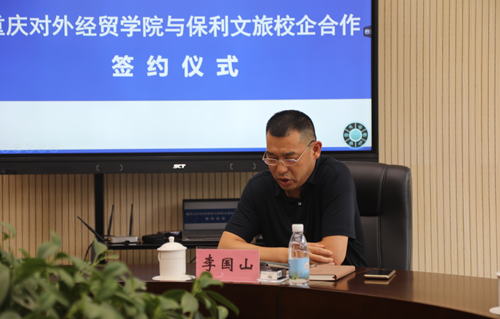 李国山总经理介绍了保利集团及保利文旅有限公司的基本情况,他希望以此次合作为契机,与学校强强联手拓展合作空间、优化人才培养方案,探索校企深度融合人才培养模式。