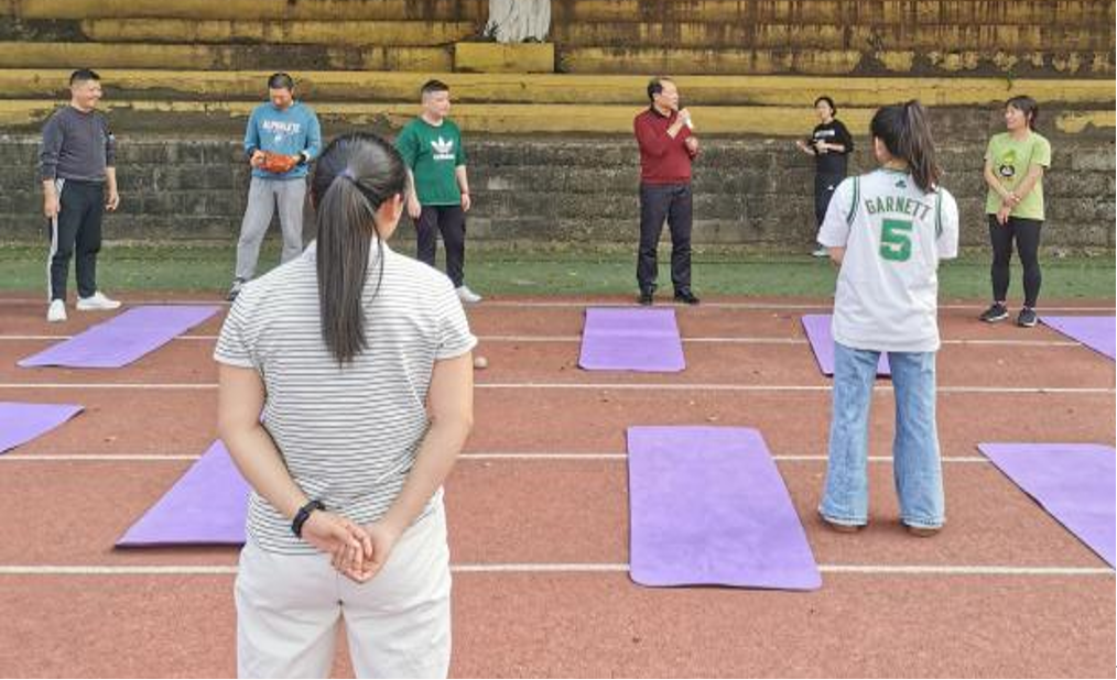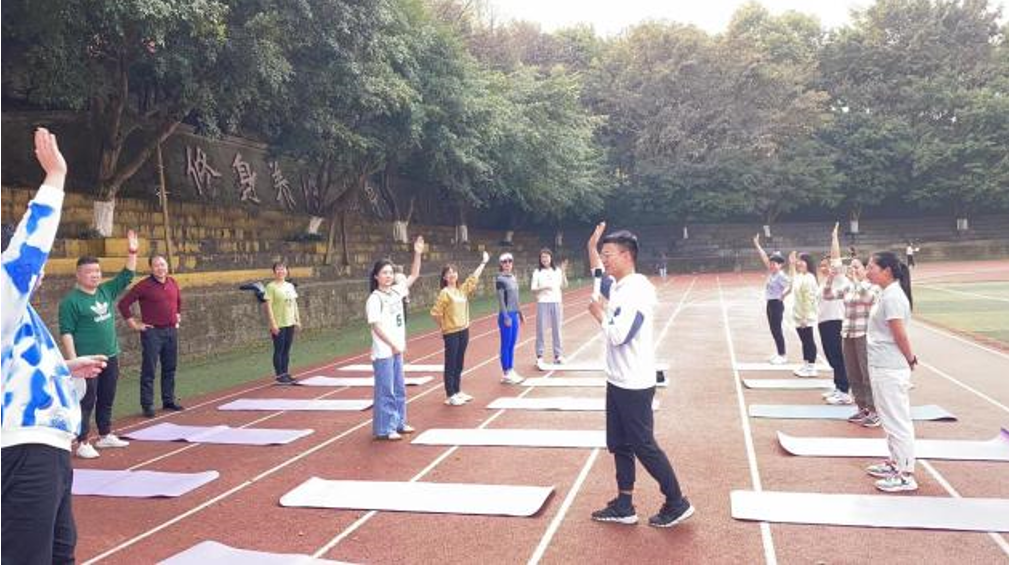 首先,周碎平老师介绍本次教研活动的主要内容以及意义,加强各学科之间的交流、促进体医融合、提高教师专业素养和教学能力。并通过跳操和简单的瑜伽训练带领大家运动起来。