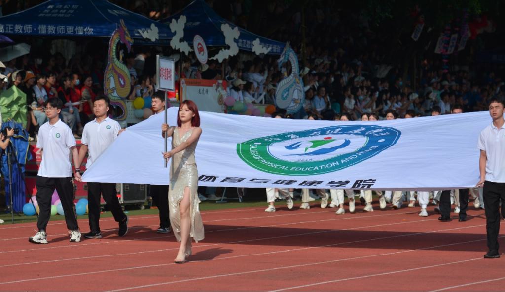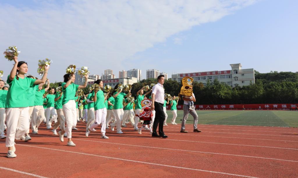 上午8:30,校国旗护卫队、彩旗队、各学院方队、裁判员队伍身着整齐统一的服装踏着整齐的步伐、喊着响亮的口号依次列队入场接受学校领导和师生的检阅。