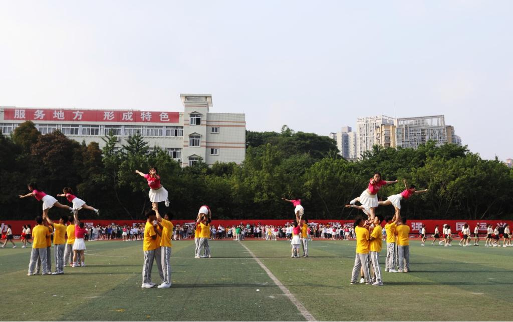 由体育与健康学学院学子以及体育公体课学子带来的棒垒球、军体拳、健身健美、手位操、舞蹈+技巧啦啦操、健身操等节目,精彩纷呈、活力四射,体现了当代大学生积极向上、乐观坚强、团结合作、坚忍不拔的精神风貌。