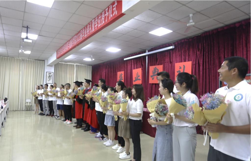 拨穗仪式后,为表达感恩之情,毕业生代表手捧鲜花为学院领导和昔日恩师送上祝福。