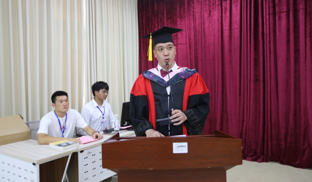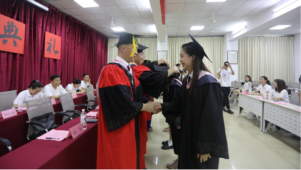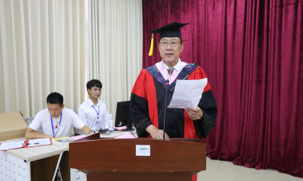 仪式开始,院长夏思永为毕业生致辞,他肯定了学生们的成长与收获,表达了对毕业学子的美好祝愿和期望,愿毕业学子从这里启帆远航,带着学院的嘱托与祝福,踏上新的征程,认真工作、热爱生活。