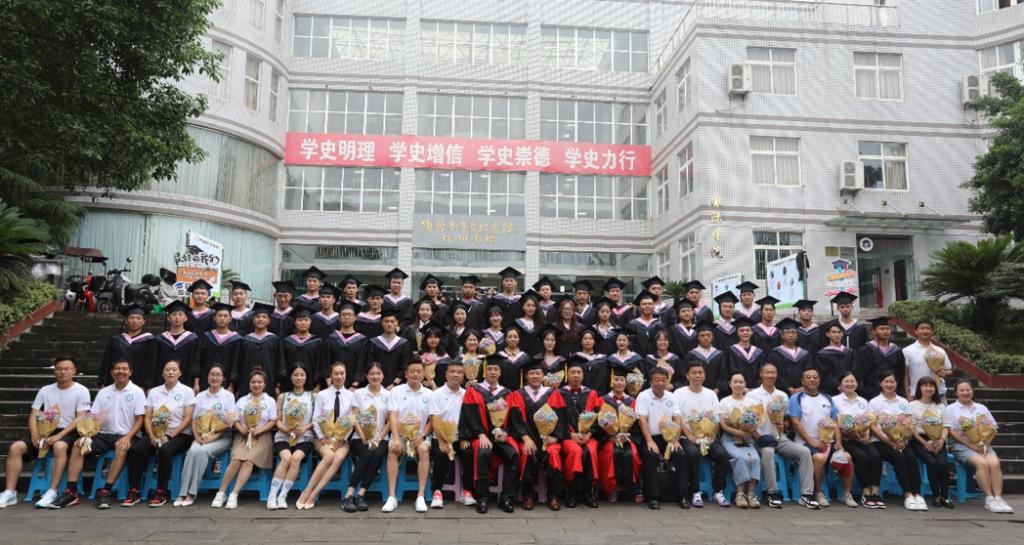 教育学士学位分委员会主任夏思永,成员谢冬、贾勇、周碎平为学院全体毕业生拨穗正冠并合影留念。