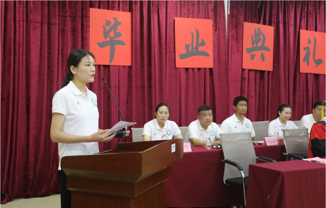 学院教师代表陈孝萍语言朴实、情感真挚,句句表达着对毕业学子的殷切希望和深深祝福。