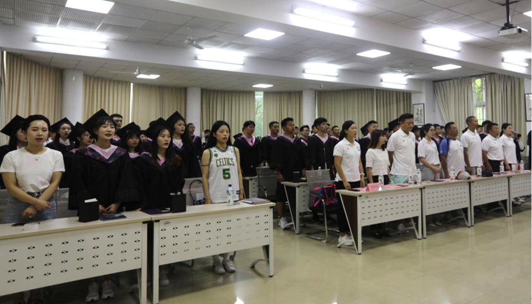 毕业生代表2018级休闲体育1班李舒婷感恩学校和老师们四年的培育与教导,回顾四年来的成长与收获,表示将牢记老师们的谆谆教诲,从感恩出发,从谦卑做起,认真做事,踏实做人,以报答学院的培养之恩。