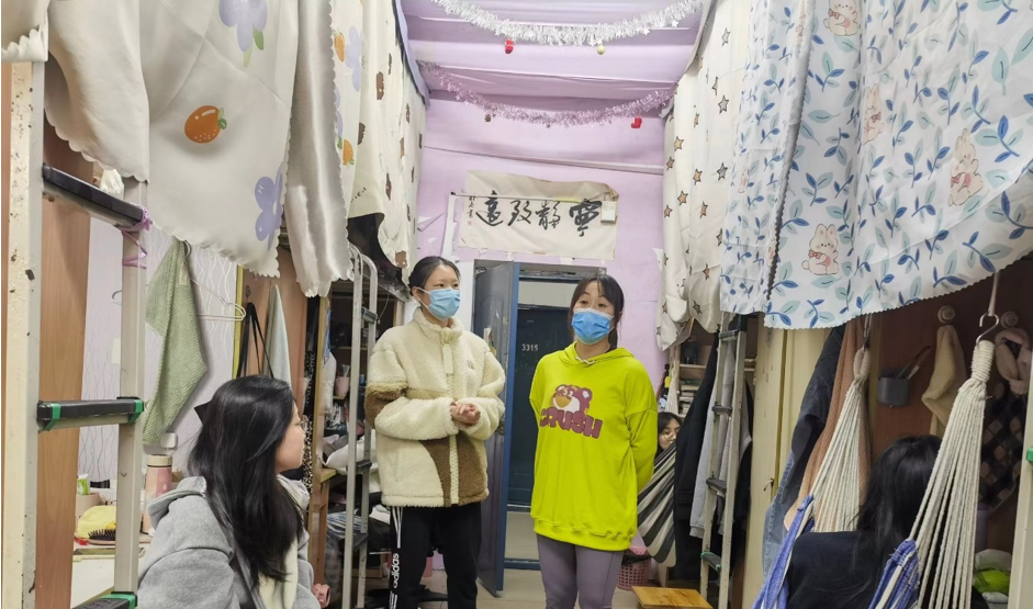 走访现场,学院领导和教师与同学们进行亲切交谈,详细了解同学们的生活、学习情况,仔细询问他们的身心状态,同时向同学们讲述了当前疫情的最新动态,希望同学们能够增强疫情防控意识严格遵守学校疫情防控的相关规定。同时提醒同学们疫情防控期间要做好个人防护,并鼓励同学们加强自我调适,树立攻坚克难的信心,保持积极乐观的心态,支持配合学校、学院做好疫情防控工作,身体力行维护校园安全稳定。