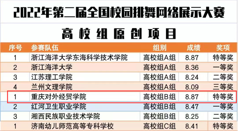 2022全国校园排舞网络展示获得 高校原创组B组特等奖